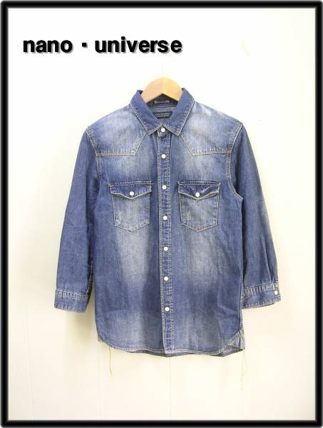 S 【nano universe ナノユニバース 7分袖デニムシャツ】