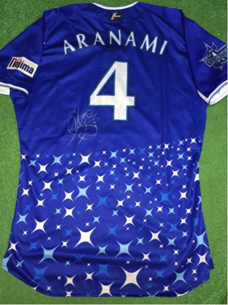 横浜Denaベイスターズの荒波翔選手が’14シーズンのスターナイトで実使用した直筆サイン入りユニフォームです。
