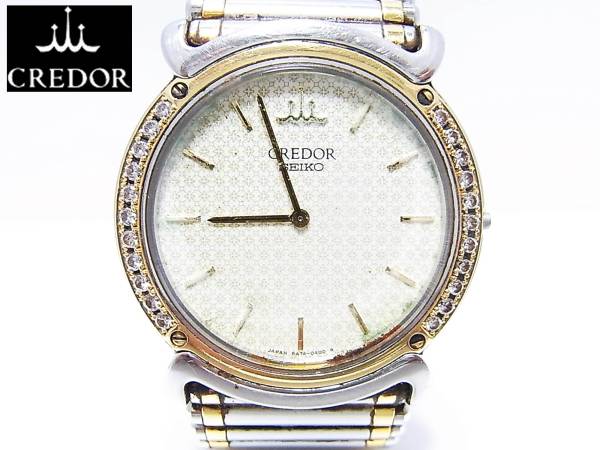 【時計】 SEIKO:セイコー クレドール 18KT(18金製) 5A74-0190R1 ダイヤベゼル メンズウォッチ 不動品(竜頭欠品) 高級ブランド