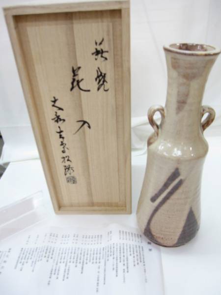 萩焼 巨匠 大和吉孝作 花入 高級桐箱入り