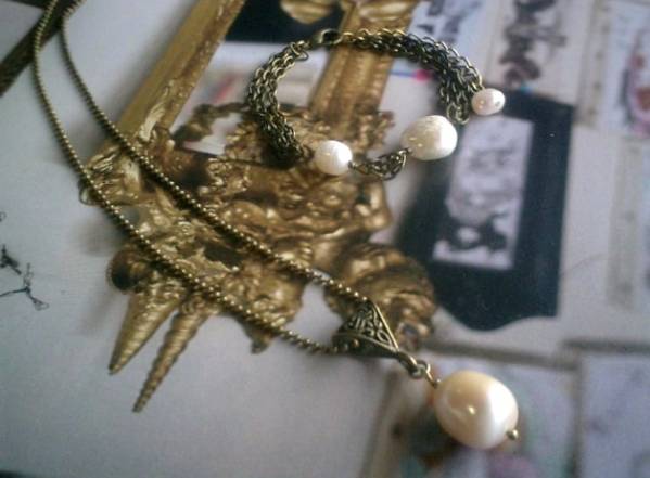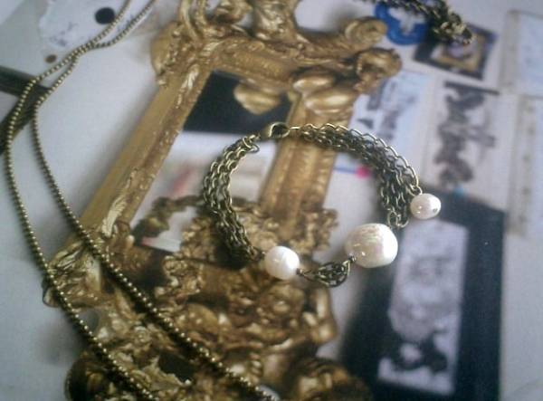私らしさを+して・・シリーズです♪個性的なパール・・大きめのバロックやコインの淡水パールをシンプルに仕立てたネックレスとブレスレット2点セットです♪アンティークな表情です♪♪ネックレスは14ミリ位のバロックの一粒パールに華奢なボールチェーンを合わせました♪長さは80センチ+アジャスター10センチで最長90センチ位です♪ブレスレットは8ミリから11ミリ位のバロックやコインです♪長さは16センチ+アジャスター6センチで最長22センチ位です♪それぞれ単品でも出品しています♪ハンドメイドを ご理解頂いてノークレーム、ノーリターンでお願いします