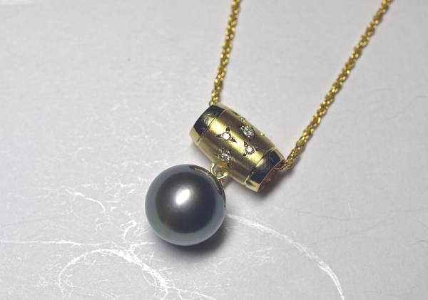 K18YGイエローゴールド黒蝶真珠ペンダントなります。
