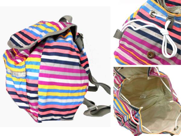 小さめサイズが可愛いオシャレな形のミニリュックが新登場。 コンパクトで扱いやすく、十分入る収納力でレジャーやデイリー使いに最適です。 サイドにファスナーが付いているので、片方の肩に掛けたまま ちょっとしたものの出し入れができます。 ・モデル:9808 SMALL EDIE BACKPACK スモールエディバックパック ・カラー:D327 SNAPPY スナッピー ・サイズ:約H28cm×W25cm×D13cm ショルダーの長さ: 約49,5cm~79cm ・素材 :レスポオリジナルナイロン ・仕様 :メイン開閉マグネットボタン 外部 ファスナーポケット×1 ファスナー×1 内部 ファスナーポケット×1 ポケット×1 ・付属品:ナシ ※新品未使用のお品ですが家庭内保管の為、微細なスレ・シワがある場合がございます。 レスポの商品は裁断の関係により、1つ1つ柄の配置が異なります。 その為、送らせていただきます商品と写真の商品の柄の配置は異なります。 その点をご了承の上、ご入札お願いします。 | |||