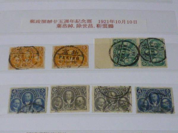 ~№17~ 旧中国切手 1921年 紀念 郵政開放 4種完 計18枚 使用済