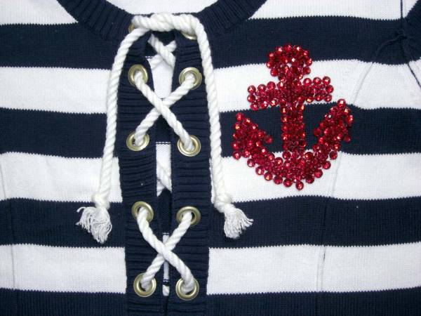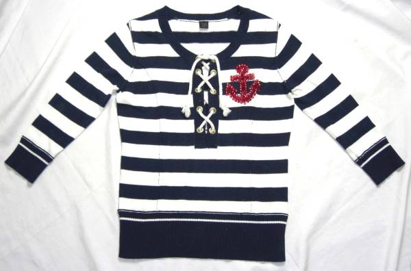 beatrice/ベアトリス*白×紺*ボーダー綿ニット*38*USED*a123 | ||||