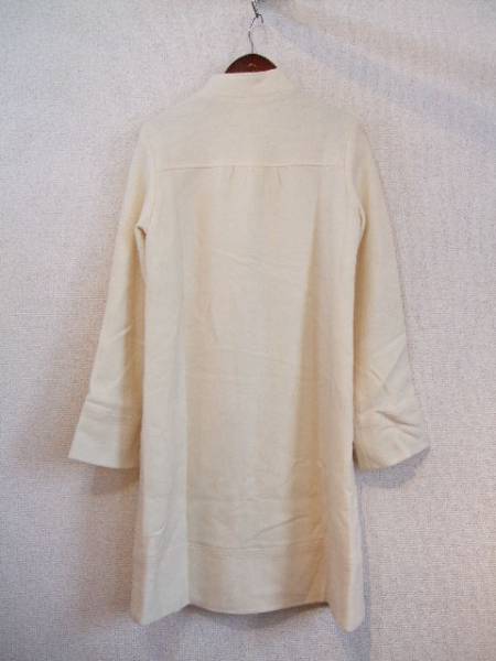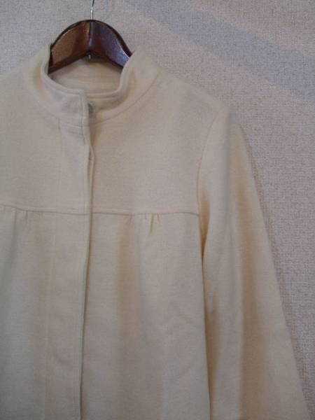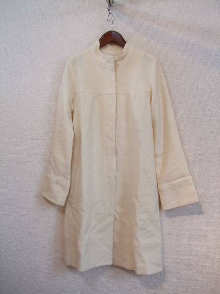| 商品紹介 | 白のシンプルなコートです。 立て襟、隠しボタンでスッキリしていますが、 胸元に切替えがあり、広がり過ぎない適度なAラインで 女性らしい可愛さもあるオシャレなデザインです。 《素材》 表地:ウール100% 裏地:キュプラ(ベンベルグ)100% |