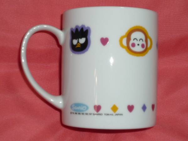 ☆商品説明☆ ご覧いただきありがとうございます^^ サンリオキャラクターの陶器製のマグカップです。1997年製。バッドばつ丸、おさるのもんきち、けろけろけろっぴ、ハローキティ、ポチャッコの絵柄でと~ってもかわいいですよ^^大きさは直径 約7.7cm、高さ 約9cmです。たいへん古いものですが箱に入れたまま大切に保管していましたので未使用でたいへん綺麗な状態ですが、家庭での保管ですのでご理解いただける方のご入札をお願い致します。 ☆発送方法☆ 定形外郵便、ゆうぱっく ☆コメント☆ ノークレーム、ノーリターンでお願いします。ご不明な点がございましたらお気軽にお問合わせ下さい。他にもサンリオキャラクターグッズたくさん出品しております☆ 良かったらご覧下さいね*^^*