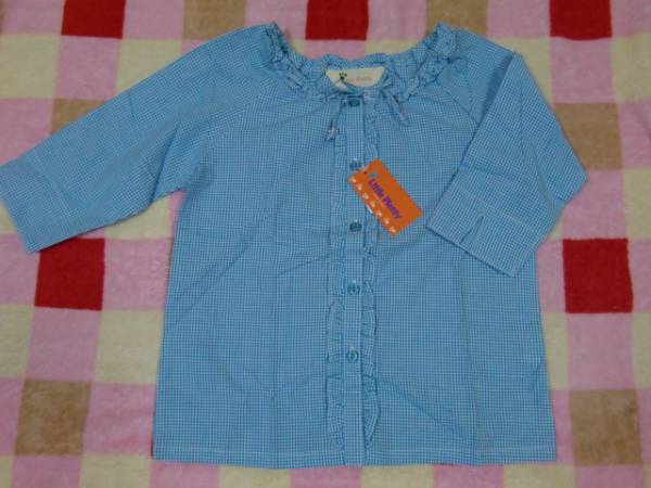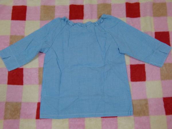 | 新品未使用タグ付★水色チェックの七分丈フリルトップス 110cm | |||