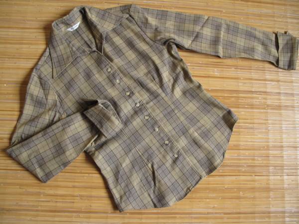 新品同様 シャツ ブラウス チェック 長袖 ベージュ M 日本製
