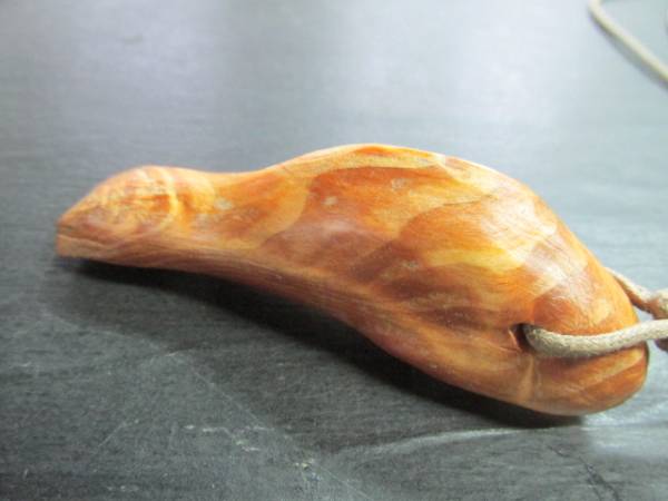 赤脂材の最高峰脂松の仁を使って彫刻でイルカを掘り出しました。素磨きで一番きれいに仕上がる材料である松の仁はそんなに量は無く作れるものが限られます。その贅沢な材料を使ってイルカのペンダントを作りました。
