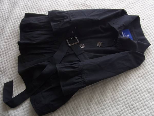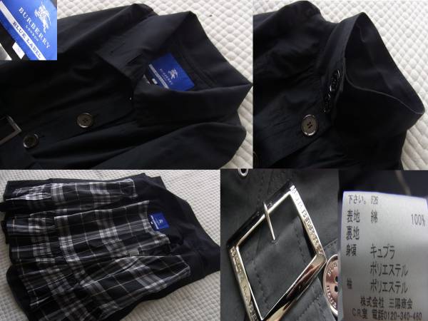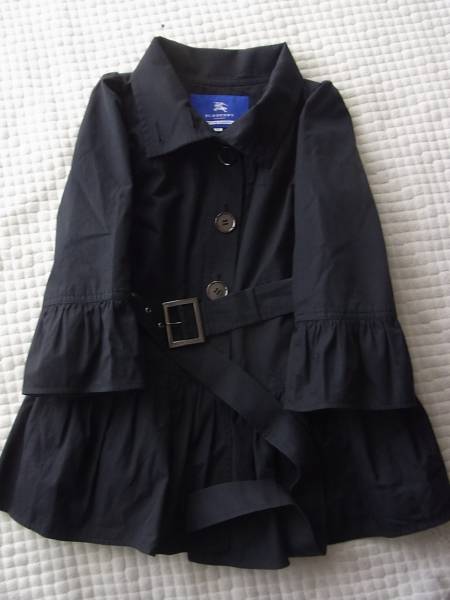 即決バーバリーブルーレーベル完売ノバチェックベルト付プリーツふんわりコート黒38サイズ