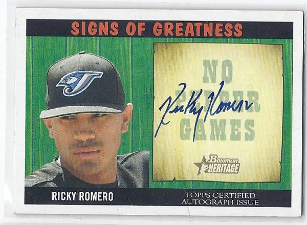 2005 Bowman Heritage Ricky Romero Signs of Greatness Auto