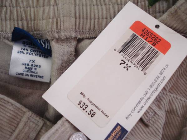 未使用*オシュコシュ*薄手コーデュロイ ロングパンツ長ズボン 7X