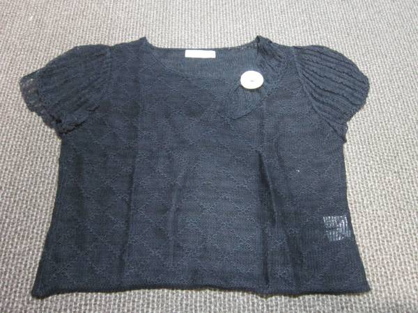 ★Cree★半袖サマーセーター黒ブラック L シェルボタン