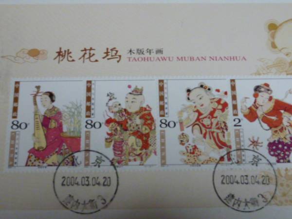 26 新中国切手カバー 2004年 2TM 桃花木版年賀 小型・他貼