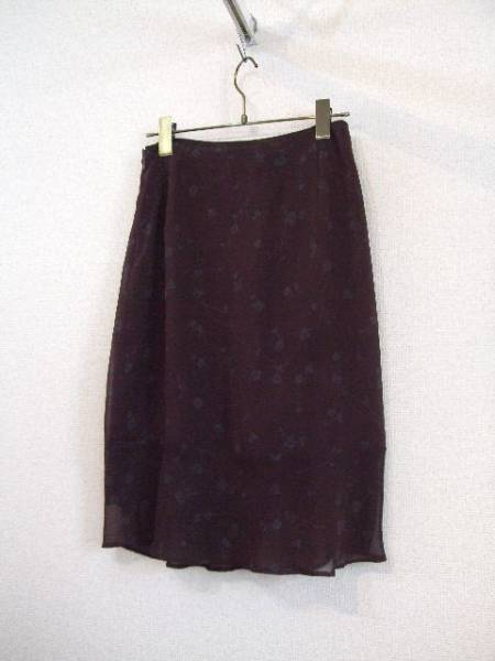 | 商品紹介 | 単色の花柄がプリントされた膝下丈スカートです。 シフォンの軽やかな素材感がステキです。 地色は茶に紫が混ざったようなニュアンスカラーで、 プリント部分は茶とグレーが混ざったようなくすんだ色合いです。 ほぼタイトに近い形で、裾のみフレアになっています。 《素材》 ポリエステル100% |