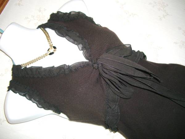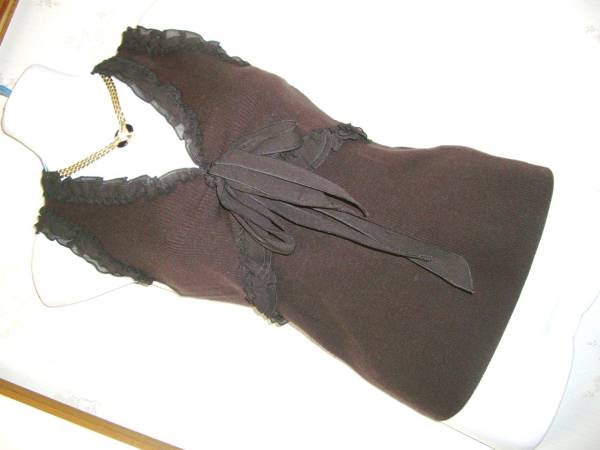 お色は茶色、ニットは細かなリブ編みですので、伸縮性も良く、着心地も肌触りも柔らかなタンクトップになります。