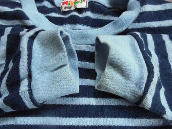 商品説明 ミキハウス★紺と水色のボーダー長袖Tシャツ★100