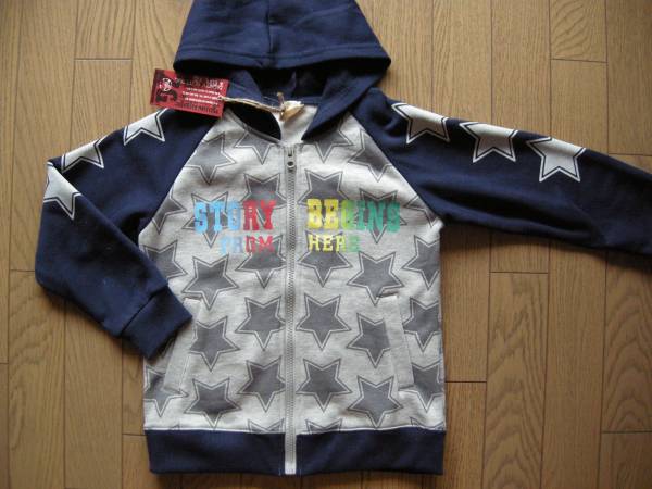 【新品】ZIP GUN星柄裏起毛パーカ 120 灰紺