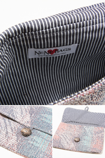 アメリカで現在注目されているネネバッグズのクラッチバッグです。色合わせのしやすいミックスツイードで幅広いスタイルにお使いいただけます。これからの季節おすすめのお品物です。
