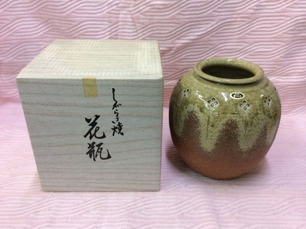 陶器製 信楽焼 花瓶 未使用 共箱付  検 花器 陶芸 工芸 置物 インテリア