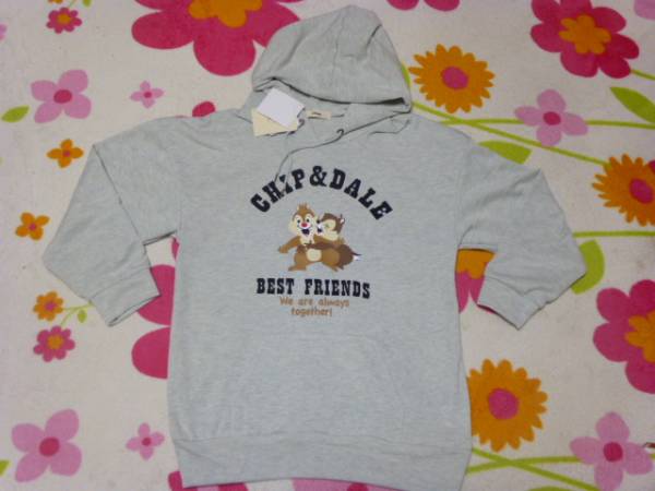 新品ディズニー チップ デール プルオーバー パーカーL 灰色