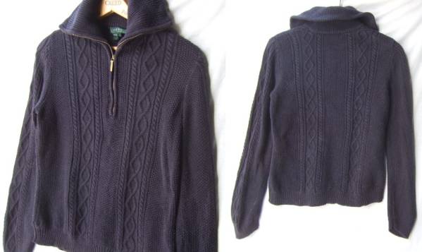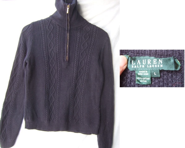 ●LAURENラルフローレンハイネックハーフジップコットンセーター古着