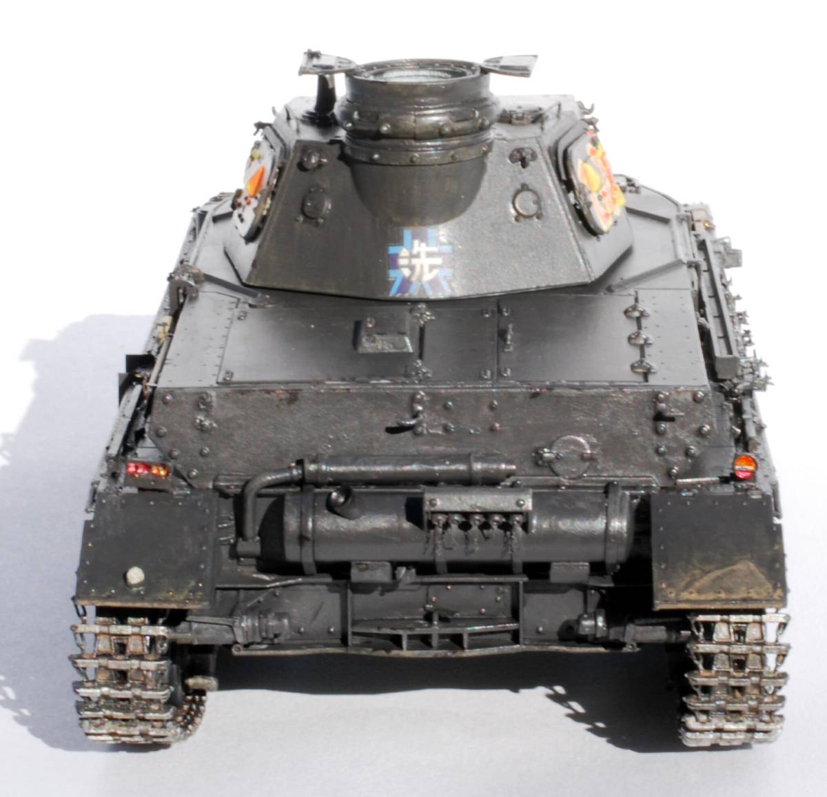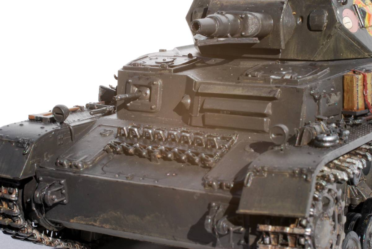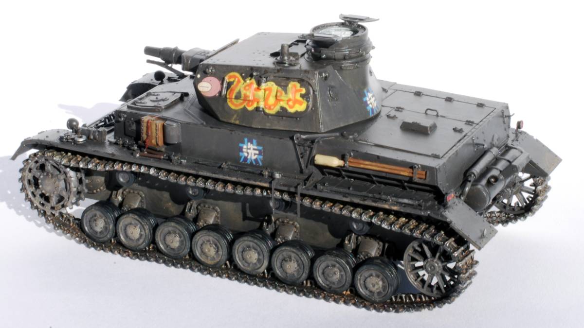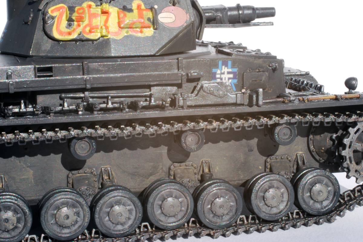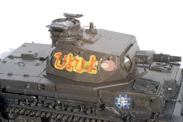 OVA[ガールズ&パンツァー」に登場する、砲塔側面に「ぴよぴよ」と書かれたⅣ号戦車D型の完成品です。下の見本写真には見本としてフィギュアを載せていますが、お譲りするのは車両だけですのでご了承ください。