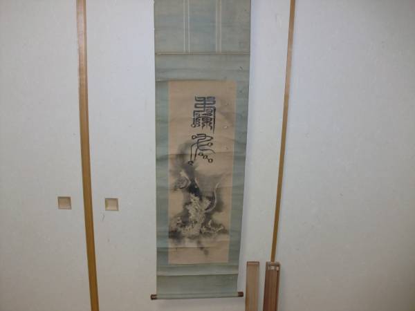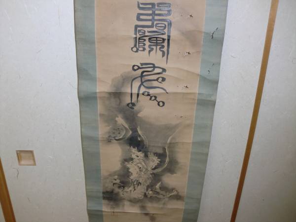 【模写】 掛軸 岩井泉流 非常に古ーい霊符付昇龍圖 木箱 蔵出し