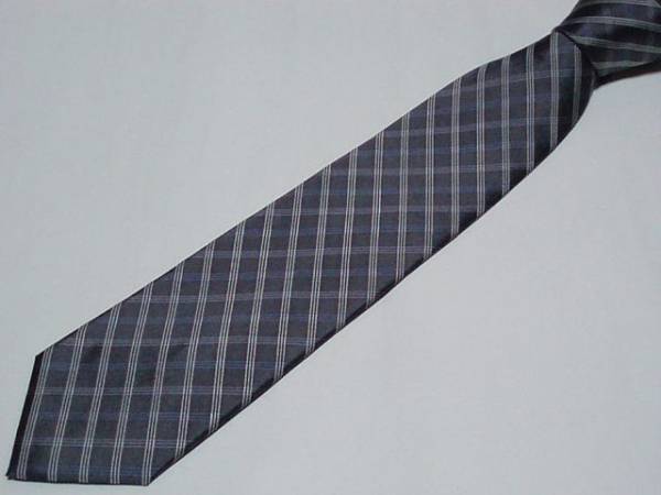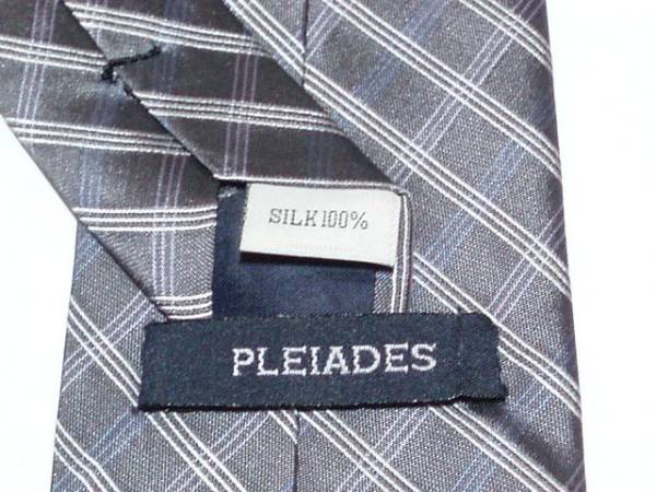 新品同様プレアデスPLEIADESシルク ネクタイ(格子柄チェック柄灰色グレー系 番号S-85