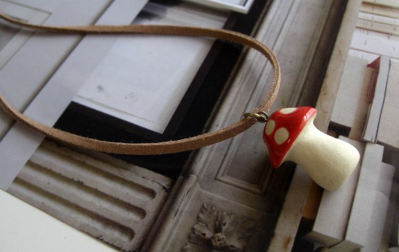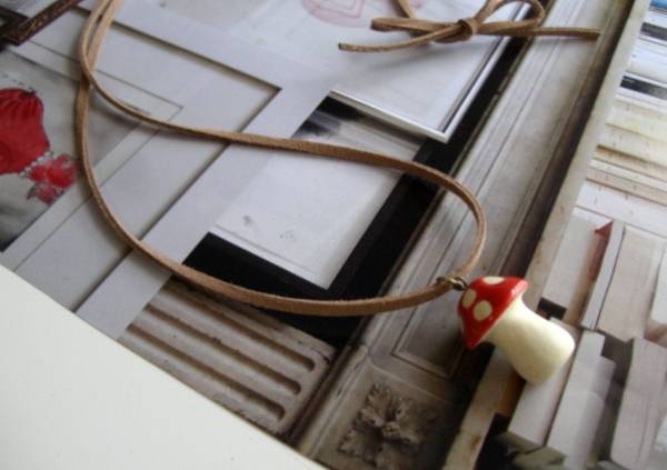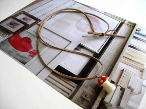セシル・スタイル・・シリーズです♪やさしいベージュ・・シックな小さなキノコさんのネックレスです♪ライト・ブラウンのスェード紐を合わせたキノコさんは28×20ミリ位です♪長さは全長85 センチ位で調節自由です♪お揃いのネックレスやブレスレットも出品しています♪シンプルでいつまでも着けられるデザインを考えて作り ました!ハンドメイドをご理解頂いてノークレーム、ノーリターンでお願いします
