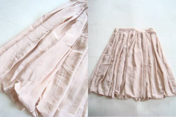 ・上質シルク生地をたっぷり使い計算された柔らかなドレープ、ふんわり感に優しい色合い、ピンクカラーがとてもお洒落なスカートです♪♪