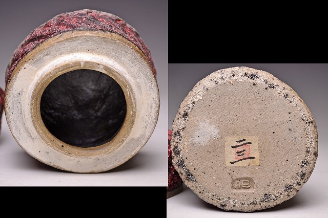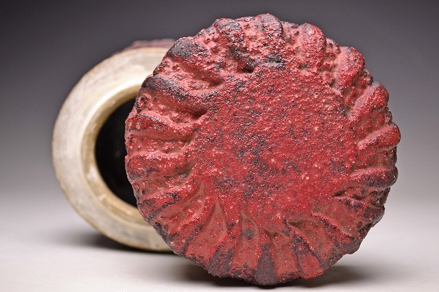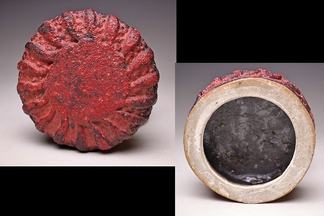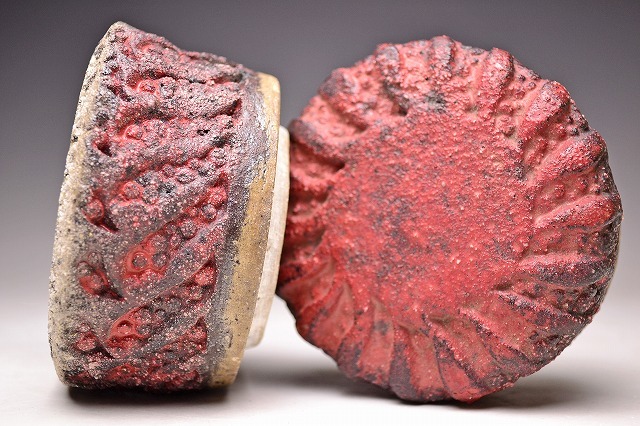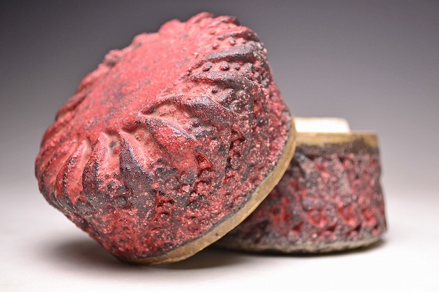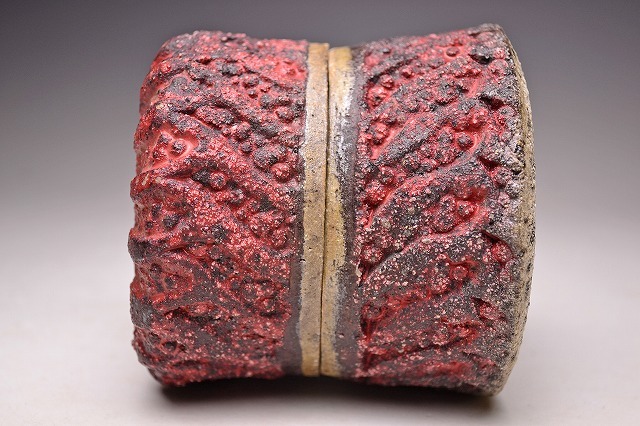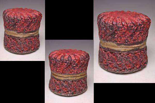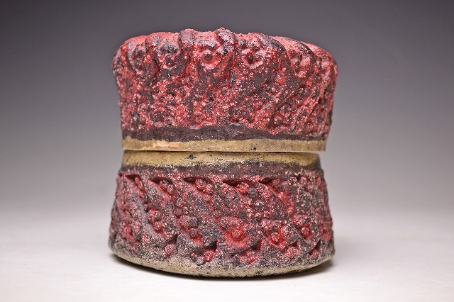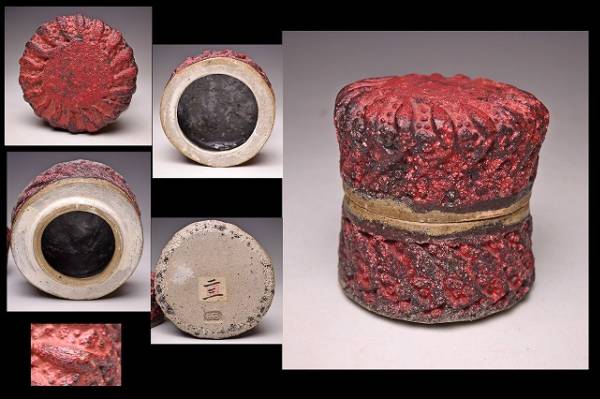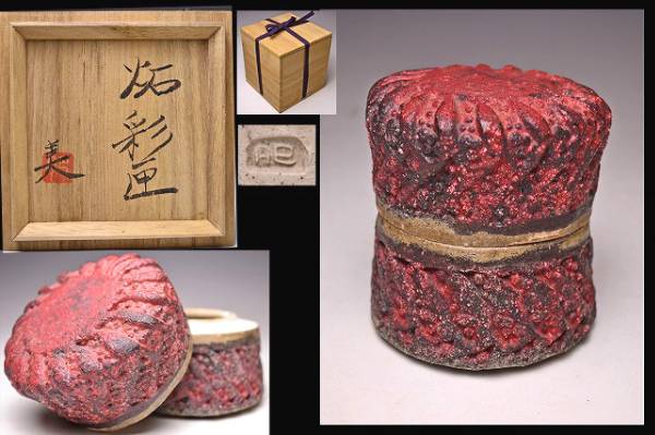 サイズは 100x高さ102mm です。 異色の作風で根強い人気のある 現代陶芸作家 肥沼美智雄氏の 陶筥作品です。 共箱となります。作品の一部 にホツがございます。 氏は石器風の作風を得意としています。 赤く彩色され 表面に独特なテクスチャが施された様子は マグマを思い浮かべるようです。 ファンのかたは是非お手にとってご覧ください。 宅配便にて80サイズで発送します。 他にも多数出品してます。同梱対応致します。