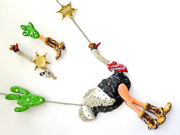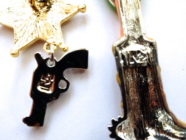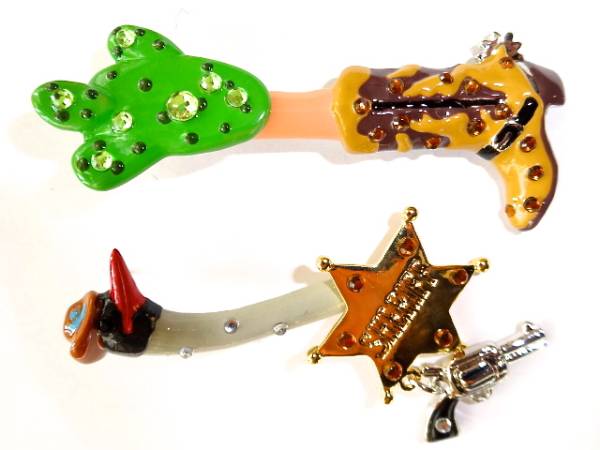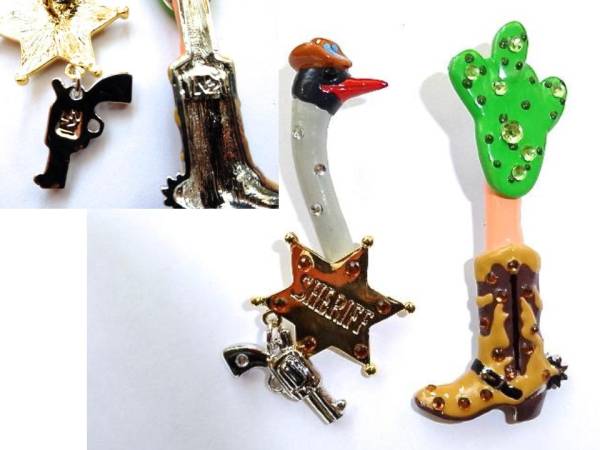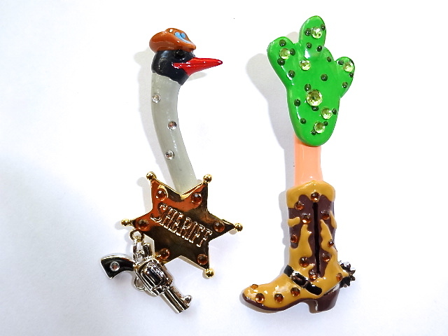 オーストリッチの保安官は、ピストルを持って、もう1つのピアスは、サボテンにウエスタンブーツです。ラインストーンがところどころに付いていて、ピカピカしています!