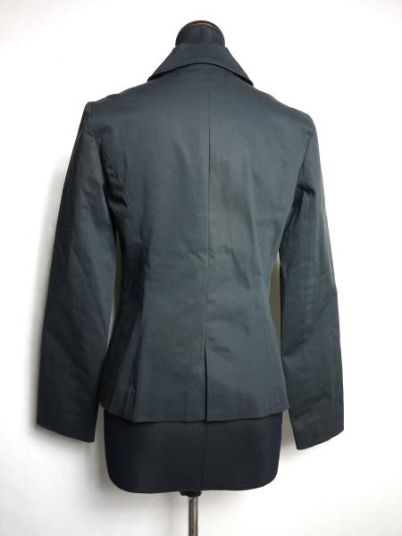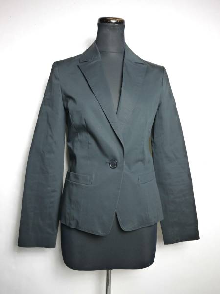 USED品正規品(サンエー・インターナショナル)のナチュラルビューティーベーシック(中国製)の紺色の表地;綿95%・ポリウレタン5%、裏地;ポリエステル100%の裏地が全体に付いたセンターベントのシングル1つ釦ジャケットです。
