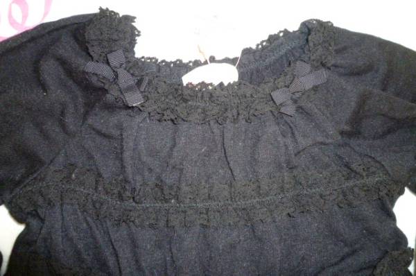 ご覧頂きありがとうございます。新品タグ付き未使用、自宅保管です。店頭のような完璧な商品をお求めの方はご遠慮して下さい。ノークレームでお願いいたします。袋に入れてたのできれいに保管できてたと思います。保障はありませんが定形外500円で配送できます。自宅計測により差額が出てしまう場合があるかもしれません。返金しませんのでご理解の上入札お願い致します。差額に納得できない方  悲しいと 感じる方は 絶対に入札しないでください。お互い 嫌な感じの 取引に なってしまいますレターパック510円。アクリル 82 ナイロン10  毛8.厚手ぎみです。ぺらぺらではありません。首のまわりにリボン2つ  そで口にもリボンついててかわいいです。デザインがわかるように 光を 入れて撮影しました。本来は しっかりした色目の黒色です。