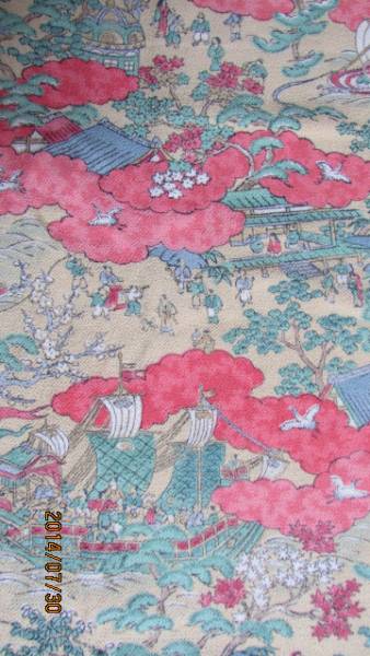(旧家・蔵出し)古布(縮緬地に雲取り時代人物風景模様着物)