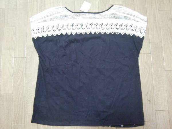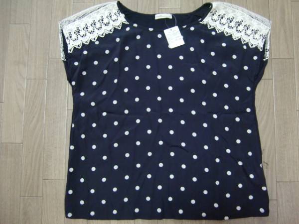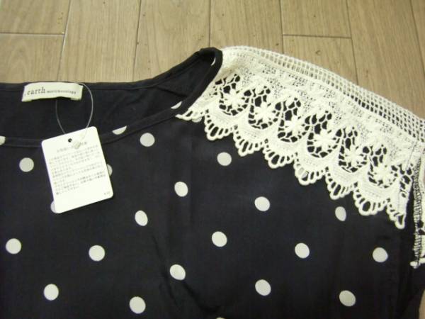 | 新品未使用★earth music&ecology ドット×レースの紺カットソー サイズF | |||