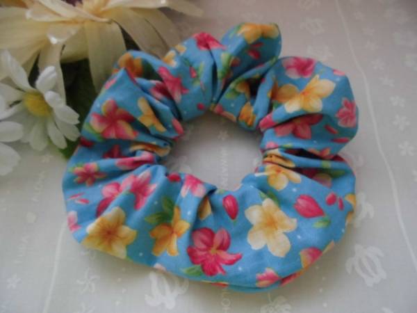 ★シュシュ★ ●可愛いプルメリア●ハワイアン●ブルー系●