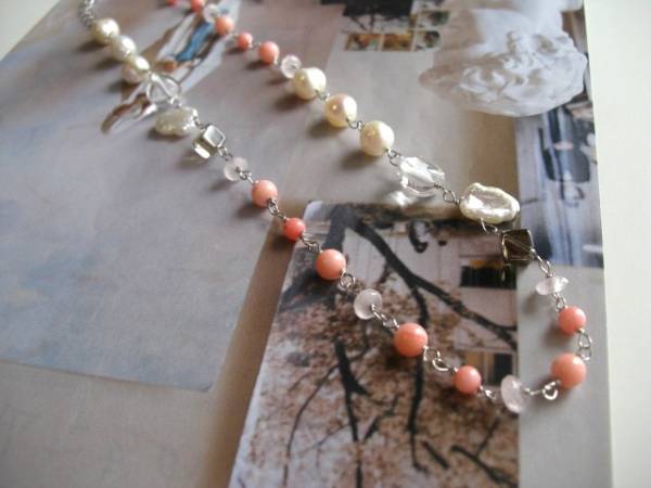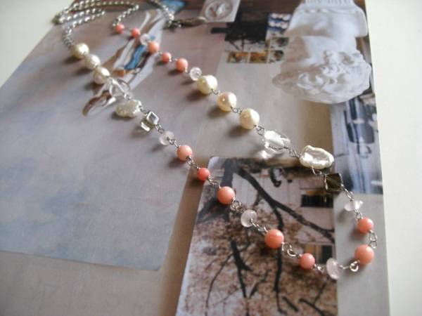 あなたらしさを+して・・シリーズです♪パール・デッサン・・可憐な淡水パールとピンク珊瑚のネックレスです♪バロックや芥子パールなどデザイン違いのパールに水晶やスモーキークォーツやピンク珊瑚を合わせてロマンチックな表情です♪9ミリから12ミリ位までの淡水パールに丸玉のピンク珊瑚やキューブのスモーキークォーツやラフタンブルの水晶を合わせました♪長さは全長70センチ位で調節自由です♪ブレスレットにされても素敵です♪お揃いのネックレス、ブレスレットやイヤリングも出品しています♪シンプルで飽きのこないいつまでも着けられるデザインを考えて作りました!ハンドメイドをご理解頂いてノークレーム、ノーリターンでお願いします