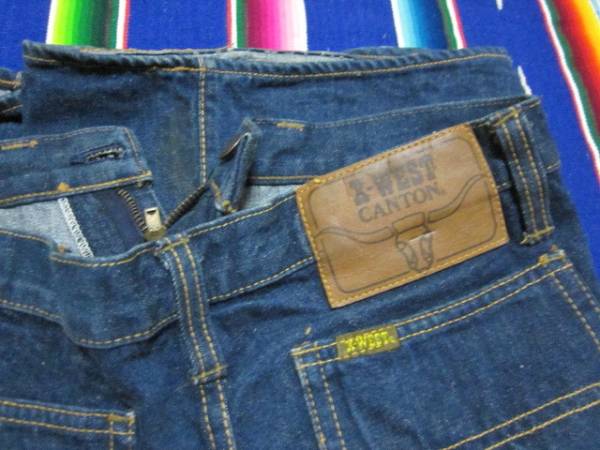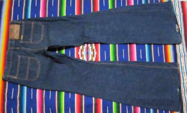 1960~70年代初頭製、当時のデニムブランド 「CANTON」 X-WEST ビンテージ オリジナル インディゴ染め ベルボトム デニム MADE IN USA サイズは表示は ウェスト74cm W30インチ相当、実測は ウェスト74㎝、股下79㎝、股上22cm、裾幅28cm 丈上げをしていないオリジナルのチェーンステッチの状態 1960-70年代、「LOVE & PEACE」 ウッドストック ヒッピー ムーブメント を彷彿とさせる、強烈なフレアーのベルボトムのインパクトの有るシルエットライン、ハイオンスのインディゴ濃紺デニム素材感、「SCOVILL」 ジッパー、外付けフロントポケット 等等のディテールが極めて良い風合い サイケデリックなワッペンや刺繍でデコレートするのも1960Sスタイル WSクリップ https://www.youtube.com/watch?v=StFhvAIv3Js 着用回数少ないまま、大切に保管されていた物なので、状態良好、着用上問題になるようなダメージはありません。ベルボトムなので、写真の様に、裾先端に多少の擦れ有 ノークレーム、返品不可を了承できる方のみを対象とした出品とさせて頂きます。 他にも出品しております、上の dqcbg101 「出品者その他のオークション」 をクリックしてください。
