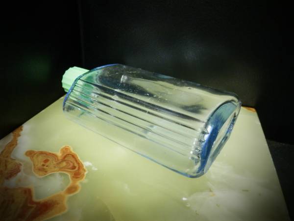 セミアンティークな小物たち/趣きある…うっすらブルー、気泡の入った化粧ガラス瓶!
