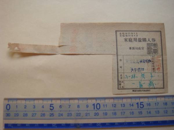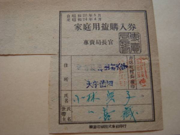 ●I-79 家庭用 塩購入券 昭和23年 斬り跡●