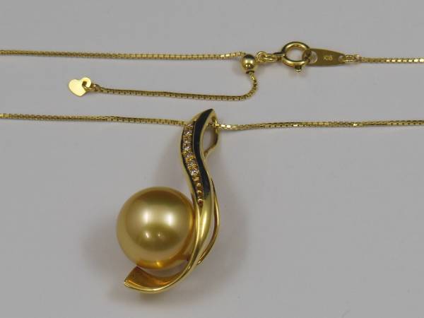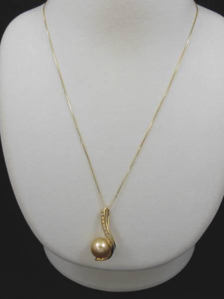 6006245 18金 K18 ゴールドパール南洋白蝶真珠(ゴールデン)/ダイヤモンド ペンダントネックレス 真珠12.2mm ダイヤ0.07ct K18ベネ45cmフリーチェーン ◎おてがる配送(ヤマト運輸)宅急便(EAZY)送料無料サービス!◎ |