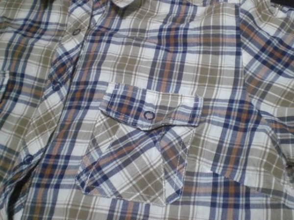 綿100%素材、渋めのチェック柄です。前はスナップボタン。
