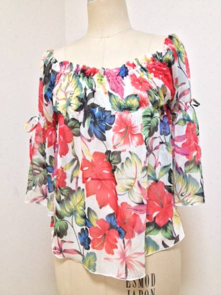 <品物>花柄サラサラチュニック スクエアカット オフショルダー