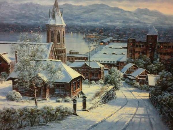 油彩 風景画 北海道 函館港で20号(60.5cm×72.5cm)です。