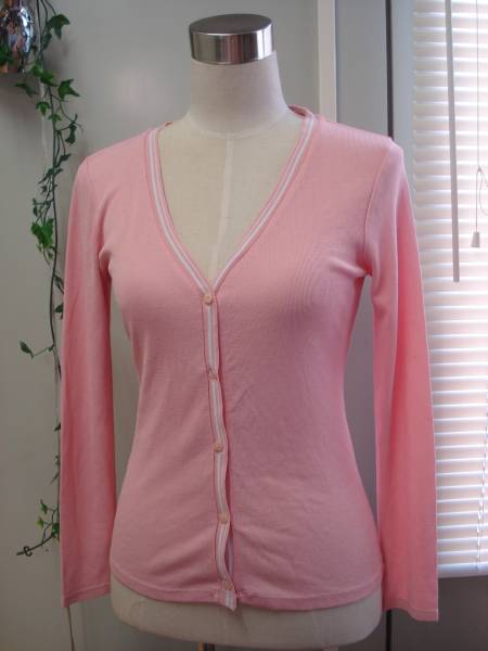 さらっとした柔らかな素材感と襟口からフロント部分のホワイトボーダーがアクセントのカーディガンになります(*^_^*)