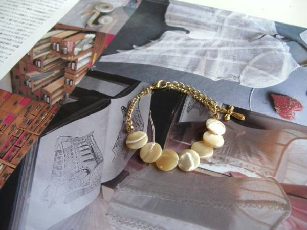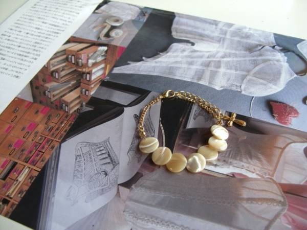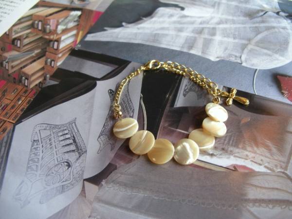 秋色・クローゼット・・シリーズです♪ロマンチック仕様・・シックなマザーオブパールのブレスレットです♪ベージュ色のコインマザーオブパールがひっそりと華やかな表情です♪12ミリのマザーオブパールのコインにデザインチェーンを合わせました♪長さは全長22センチ位で調節自由です♪お揃いのブレスレットやネックレスも出品しています♪♪シンプルで飽きのこないいつまでも着けられるデザインを考えて作りました!ハンドメイドをご理解頂いてノークレーム、ノーリターンでお願いします