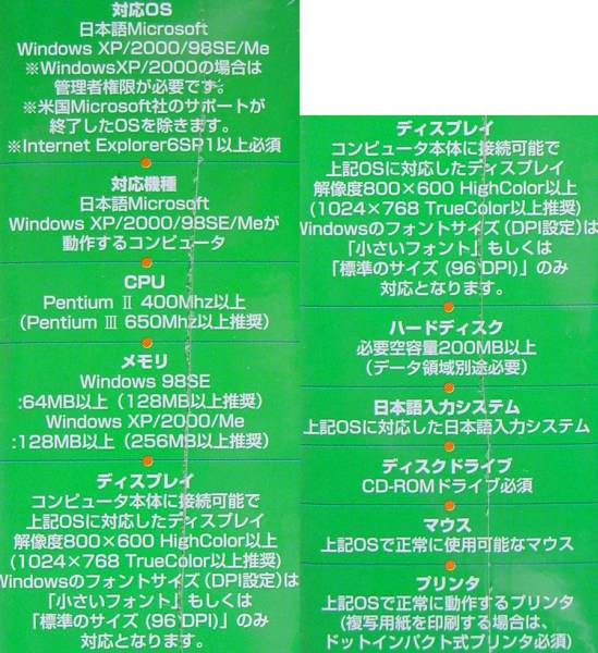 【ソフトウェアの動作環境】掲載画像などを参考にして下さい。